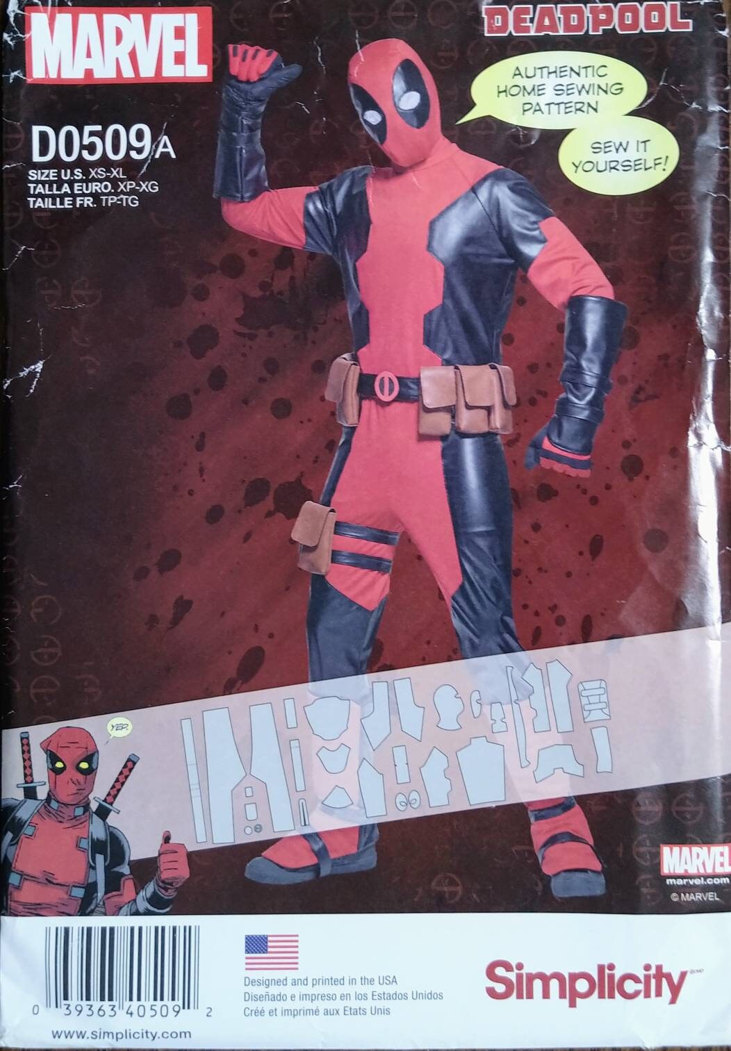 Simplicity 8236 Marvel Deadpool Halloween And Cosplay Costume Sewing Pattern Sizes Xs Xl